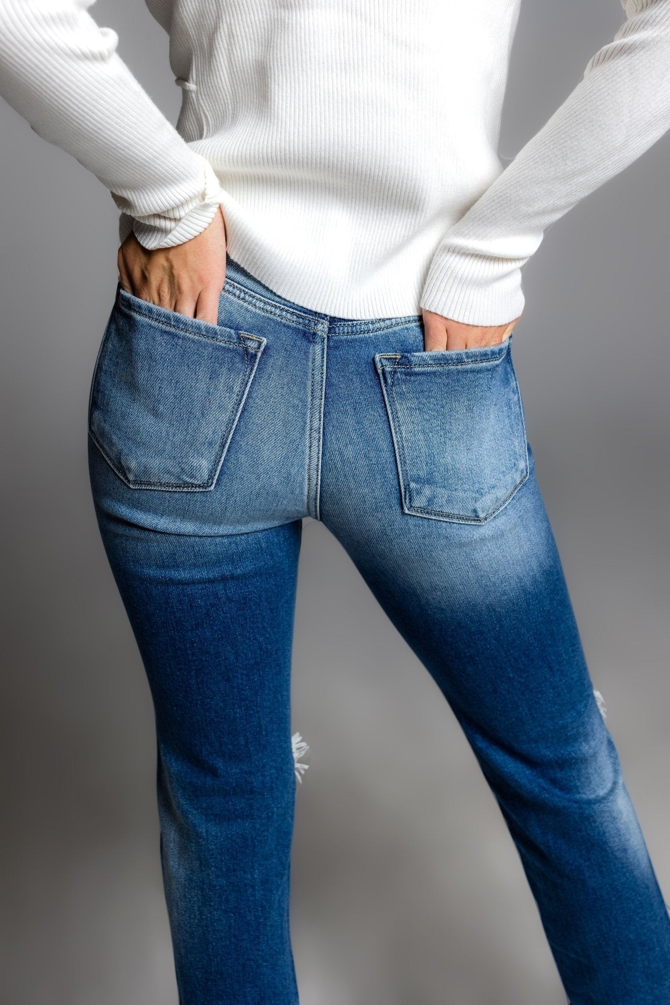 Take your OOTDs up a notch with the vintage-inspired JORDYN High Rise Slim Straight Jean! With destructed knees and the ability to wear cuffed or uncuffed, you'll look as fresh as the medium wash denim itself. Pair with your favorite tee and some statement jewelry for effortlessly style.