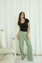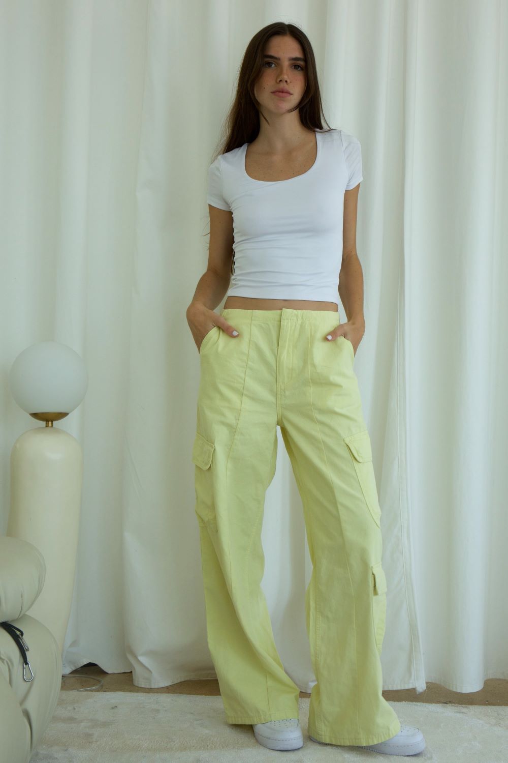Statement pants with simple styling. The trend-right colors all a pop of street chic to these classic cargos! With elevated fabric and the perfect fit, these cargos are a must-have for any fashion-forward wardrobe.