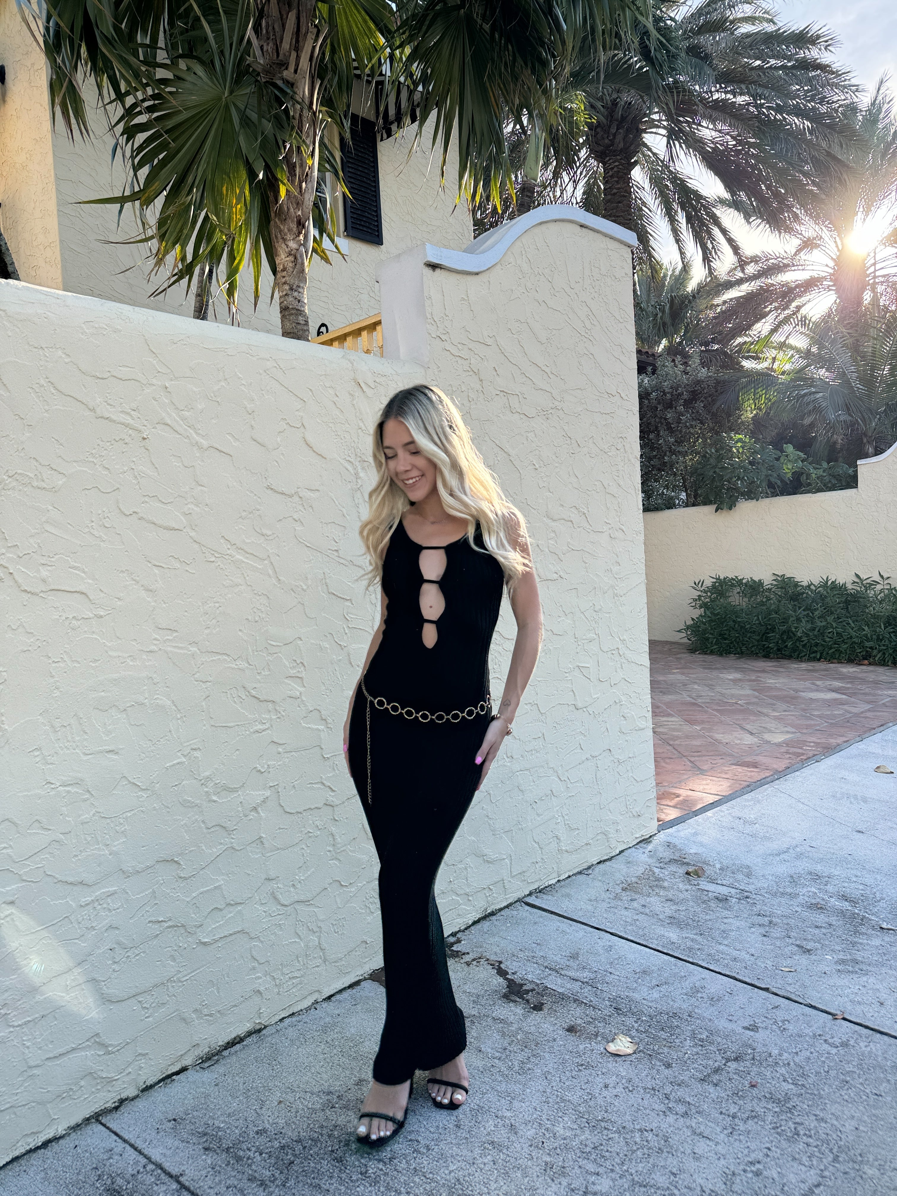 Get ready to slay in the Roxy Lattice Rib Knit Maxi Dress! Featuring a sultry plunge lattice neckline and form-fitting rib knit, this dress will have you looking red-carpet ready all night long.