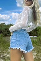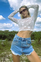 Light up the night in this stellar Seeing Stars Mesh Crop! It features a star-printed mesh that will make you the star of the show and this long sleeve, trendy layer will have you making a statement no matter how you style it. Rock it with your favorite cargo bottoms, under a vest or jacket, or with your favorite studded denim shorts or mini skirt. No matter which way, we're sure you will be the envy of the night!