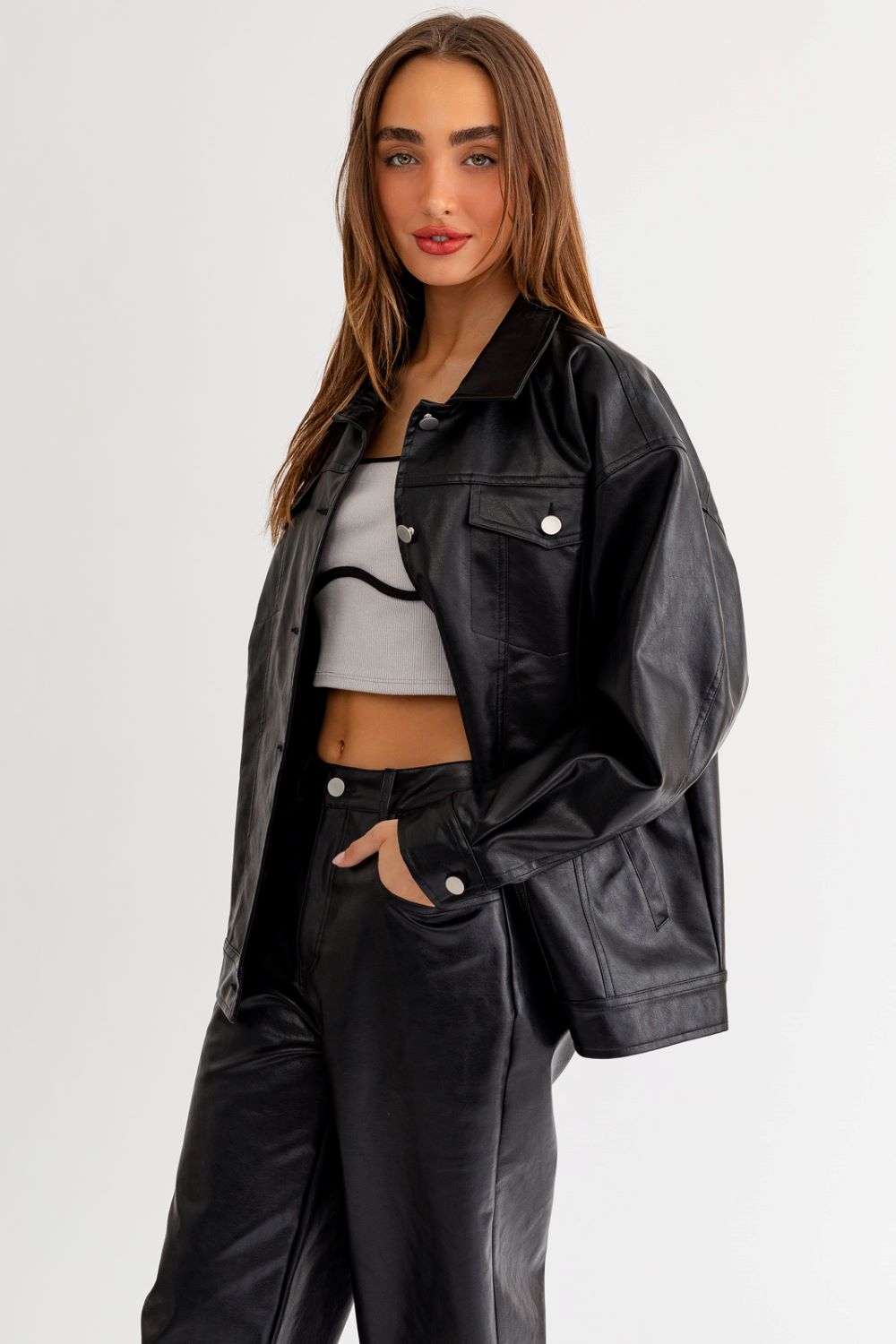 Stevie Faux Leather Boyfriend Jacket