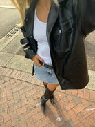 Look no further for the perfect edgy layer for your wardrobe. The Stevie Faux Leather Boyfriend Jacket is the must have piece to complete your look. Featuring a perfect boyfriend fit and made with a soft high quality faux leather, this staple black piece adds the perfect touch of 'cool' to any outfit. Literally, you need to add to cart NOW!