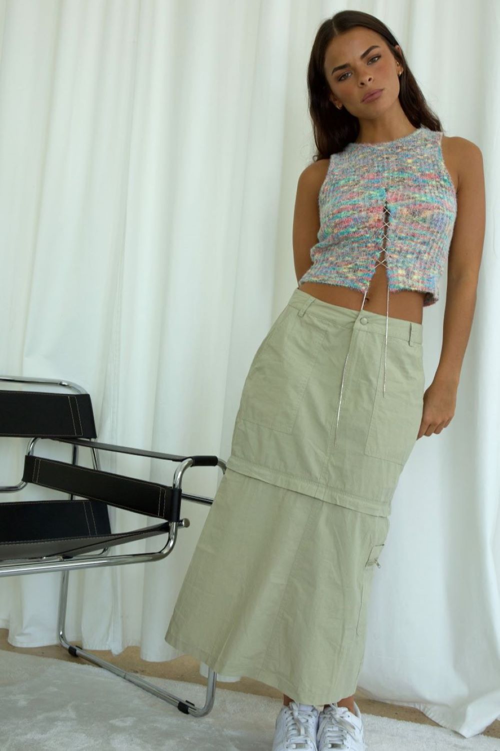 Our Two Ways Parachute Skirt has got you covered - literally! This convertible cargo skirt is a show-stopper, morphing from mini to midi and back again. Get the best of both worlds with this versatile neutral, perfect for styling with anything. Rock it and shock it - it's a two way street!