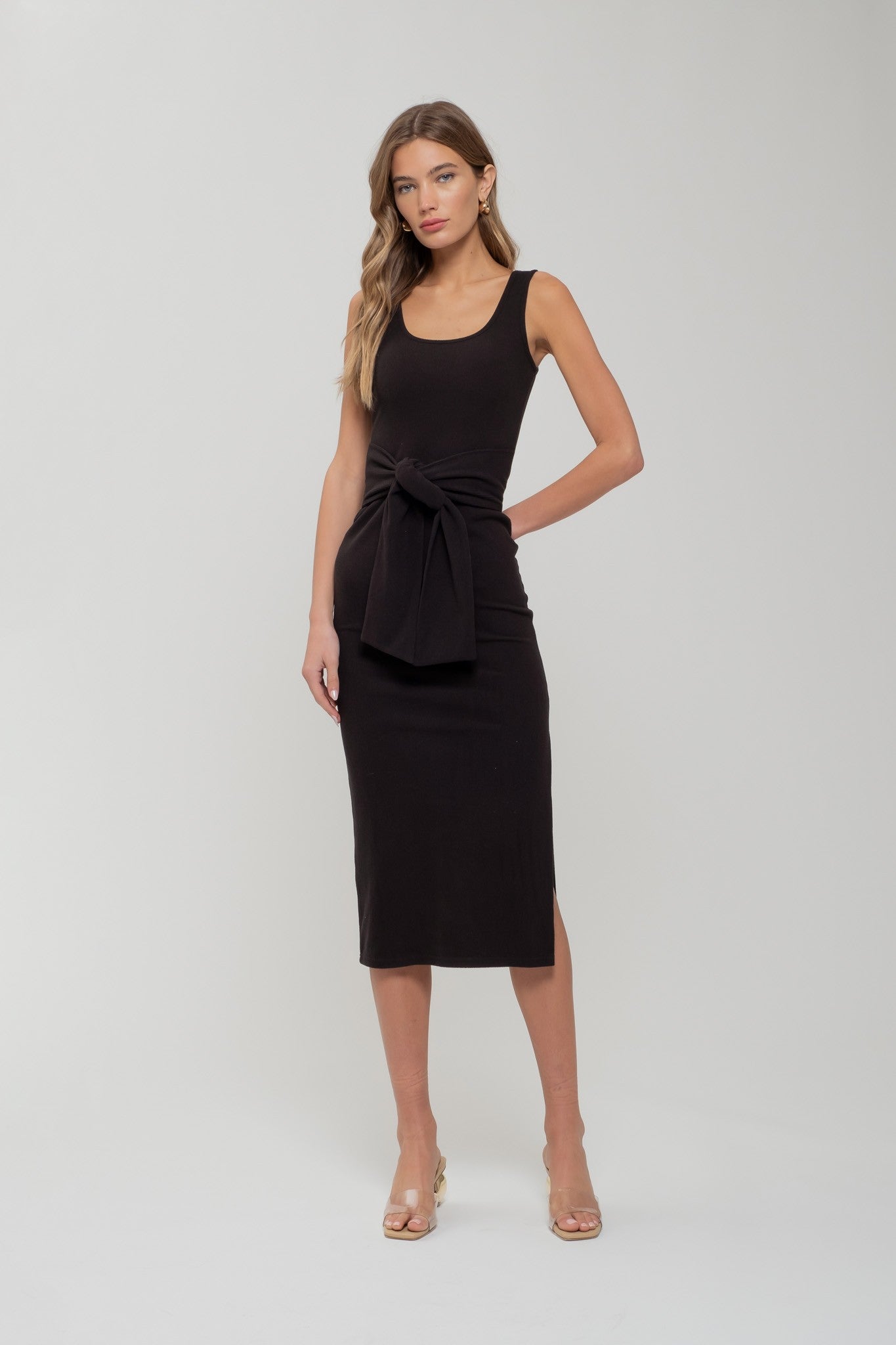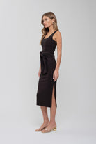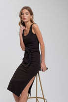 Hit socialite status with the Vesey tank midi dress. Featuring a scoop neckline and a belted waist, this knit tank dress is the epitome of sophisticated comfort. The cozy light-weight brushed fabric gives it a super soft feel and the sleeveless silhouette making the perfect piece to layer up or wear solo from season to season.